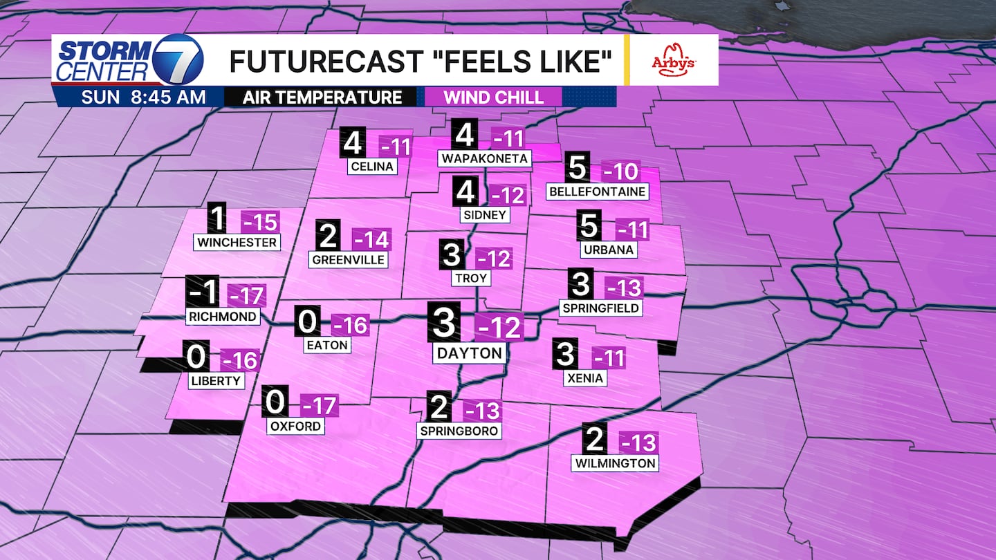Single-digit air temperatures with wind chills of -10 to -20 degrees are likely.