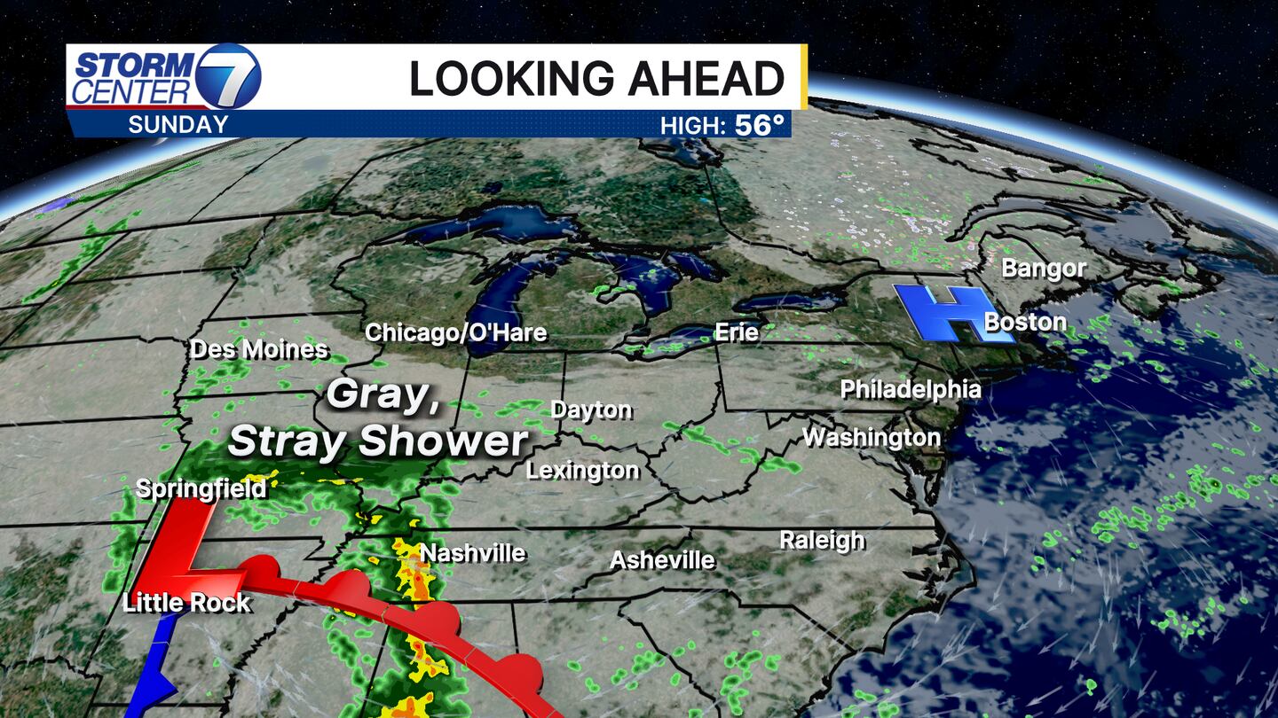 Sunday will likely be overcast and gray through the whole day. As that system nears, there could even be a stray shower heading into the evening, but it is looking like rain will arrive Monday night into Tuesday and Wednesday.